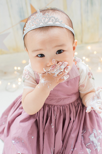 『ケーキスマッシュ』の撮影をする前に、いわゆる1歳のバースデーフォトも撮影します。またその流れで家族写真も一緒に撮るのでご安心ください。